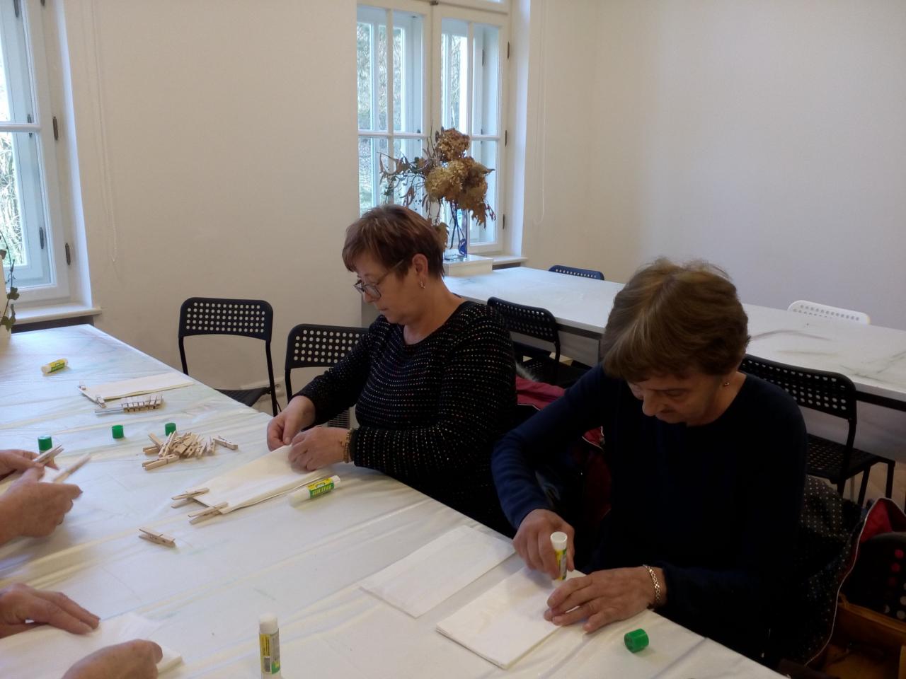 V závere našej návštevy si členky JDS vyrobili vianočné ozdoby a v krásnom slnečnom jesennom dni prezreli aj vystavované plastiky v lesoparku kaštieľa.